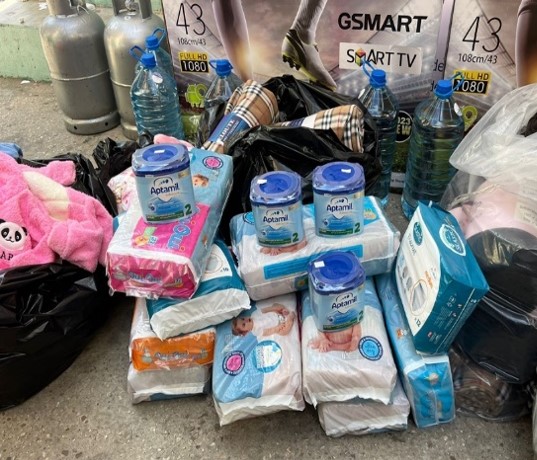 Distribution of hot meals, gas bottles, hygiene items, infant milk..
