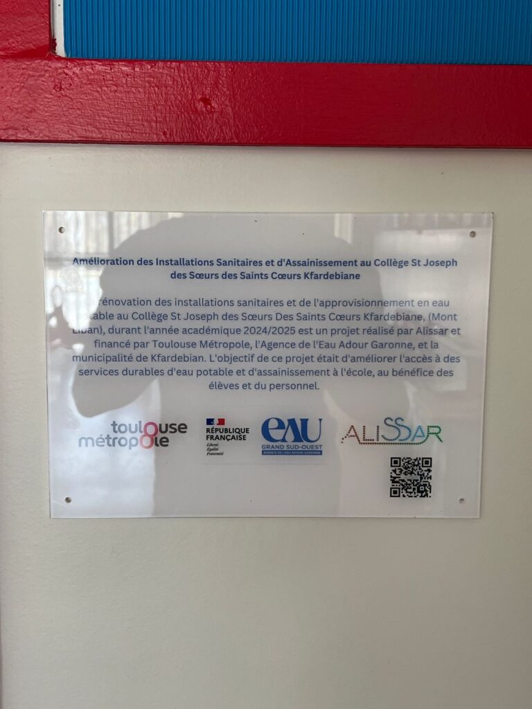Alissar plans to take part in the “ Loi Oudin Solidarité Internationale” 2023/2024 program run by “ Toulouse Métropole” and the water agency of Adour Garonne, proposing the rehabilitation of three vulnerable schools (La Sagesse St Maroun, Tahwitet al Ghadir and Borj Brajneh) with a total of 2,100 students.